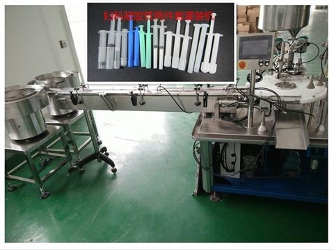 本机是我公司研发的一款GX-NJ2型二件套凝胶管灌装机,由自动理管、理推杆、理芯杆、理外罩振动盘和转盘组装主机组成,整体结构布局合理、设备稳定可靠。设备采用PLC编程控制,操作简便,具有无管不灌装、无芯杆、不灌装等检测功能特点。本机适用于针管式的妇科凝胶、药用凝胶等物料的灌装,广泛运用于制药、化工及科研领域。是目前较为理想的凝胶注射器、针管助推器包装使用设备。